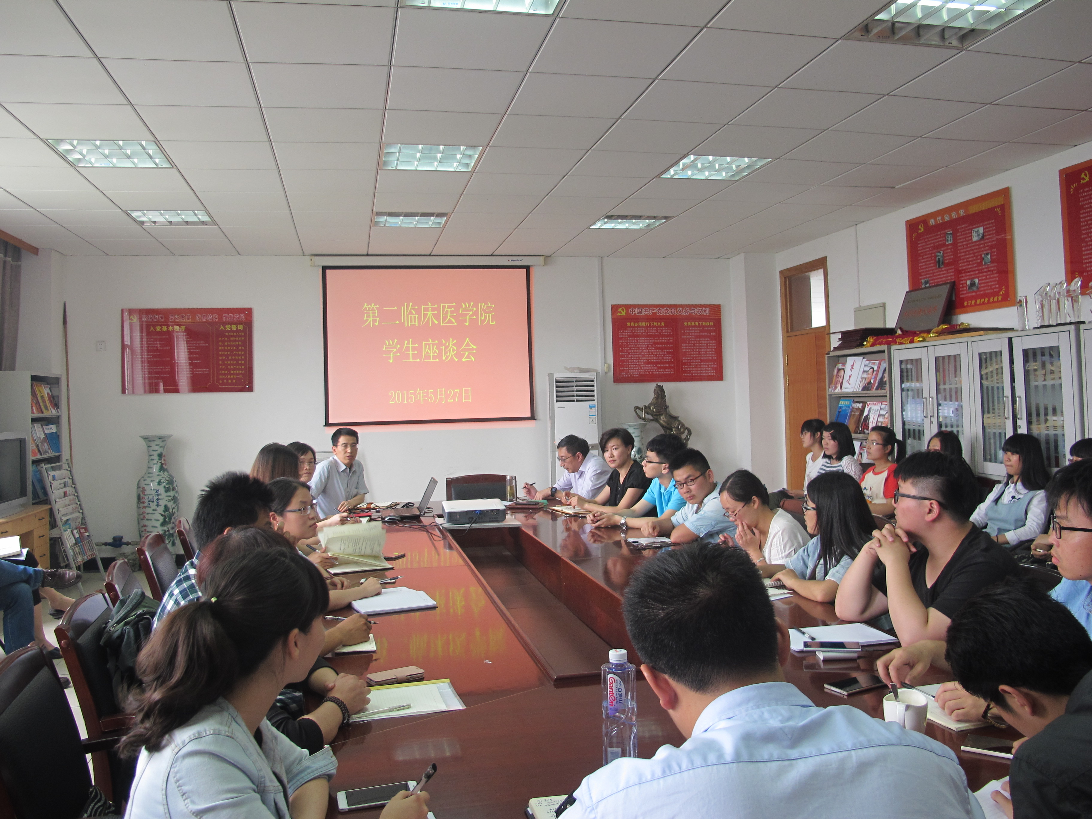 5月27日下午,第二临床医学院在学院会议室召开学生代表座谈会。学院副院长黄平、副书记马重阳、全体教学管理人员及学工干部出席了会议,学院各年级本科生和研究生代表共29人参加会议。会议由马重阳副书记主持。
